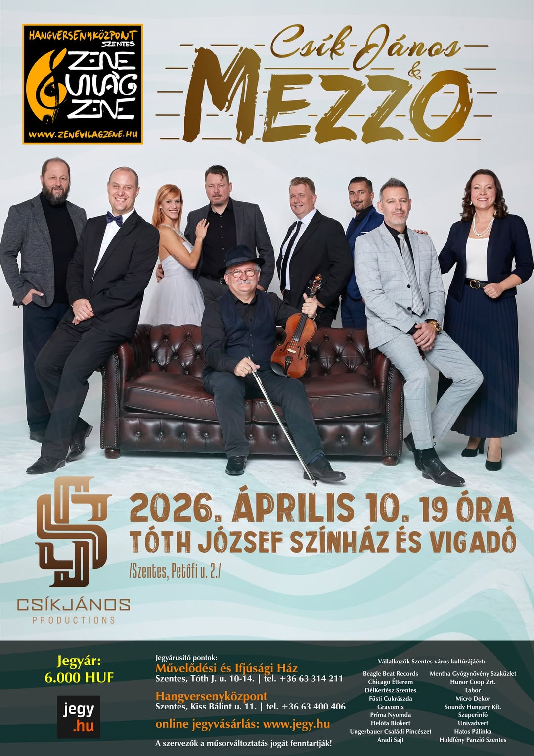BELÉPŐJEGYEK KAPHATÓK TOVÁBBÁ A HANGVERSENYKÖZPONTBAN (6600 SZENTES, KISS B. U. 11.), VALAMINT A SZENTESI MŰVELŐDÉSI KÖZPONTBAN (6600 SZENTES, TÓTH JÓZSEF U. 10-14.)!