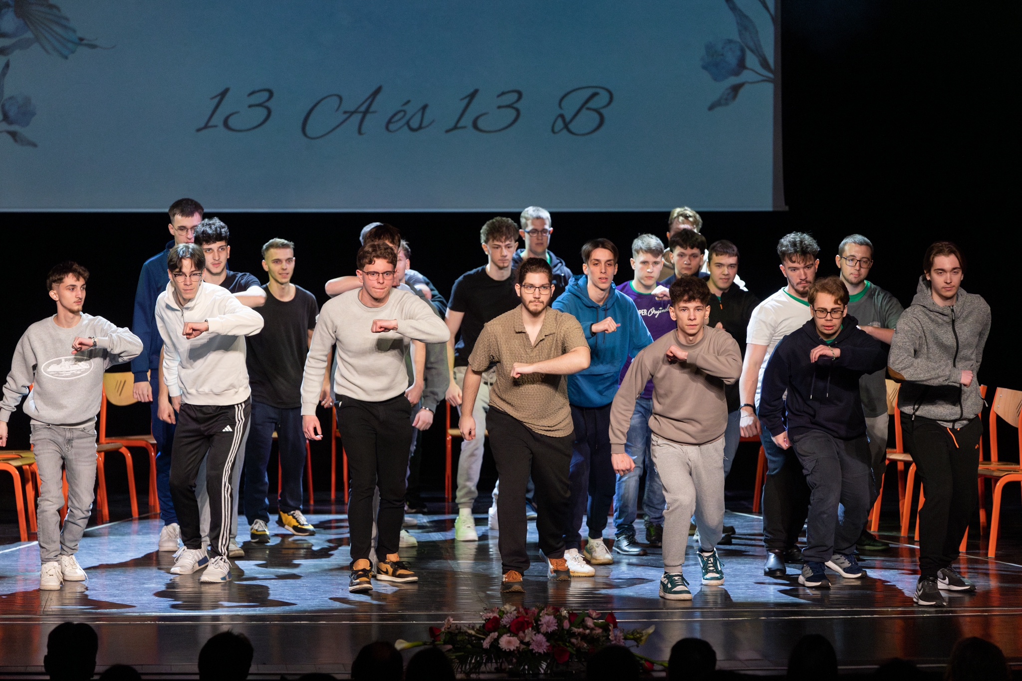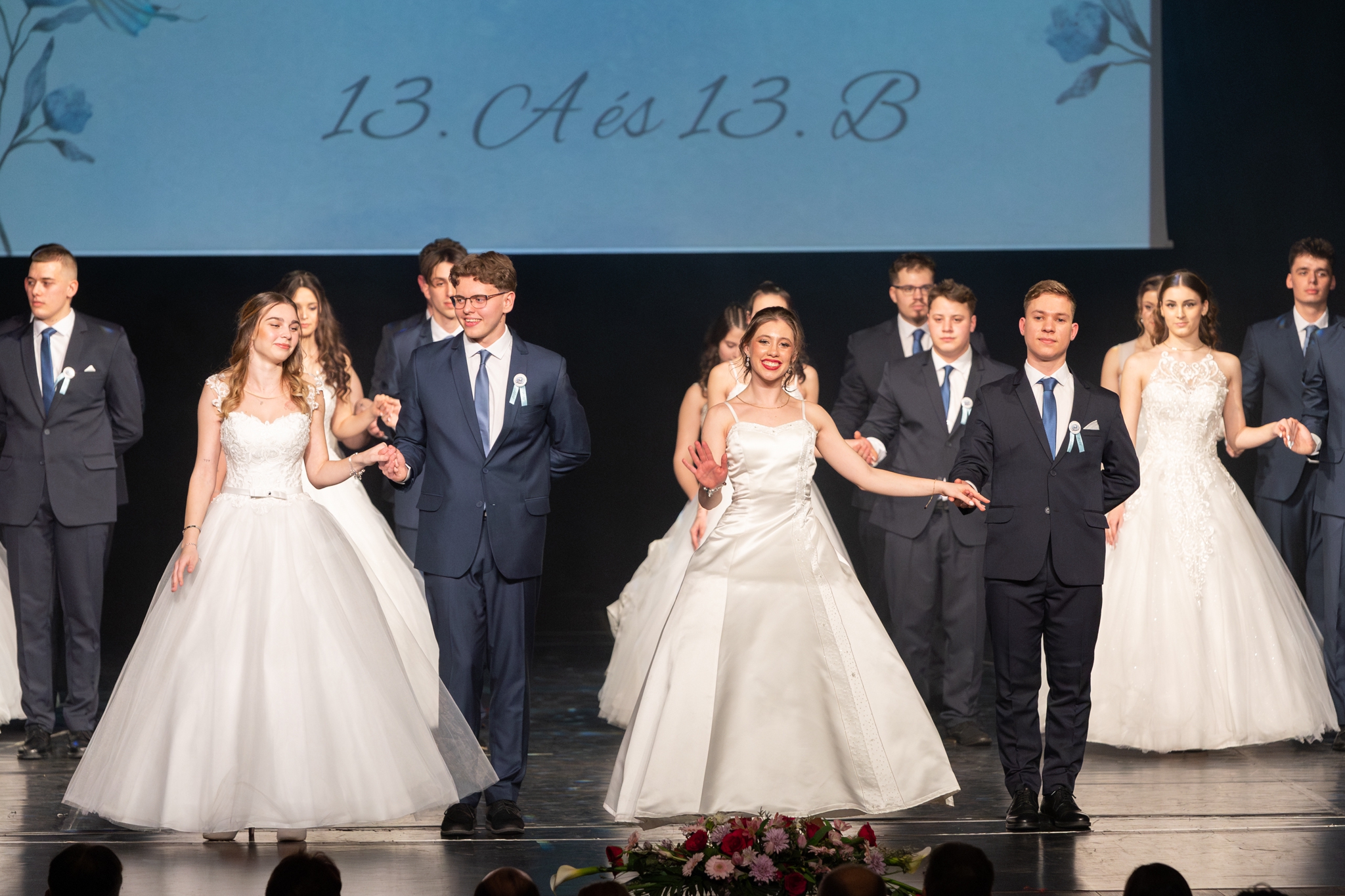 A 13. évfolyam nevében Sinka Balázs 13. B osztályos tanuló emlékezett vissza az elmúlt évek eseményeire. A diákoknak az osztályfőnökeik, Rajosné Kozma Katalin a 13. A, Szvetnyik Melinda a B osztályosoknak tűzte fel a felnőtté válást is jelképező szalagot. Már kész nőként és férfiként álltak fel a báli díszbe öltözött végzősök előbb az angol, majd zárásként a bécsi keringőhöz.