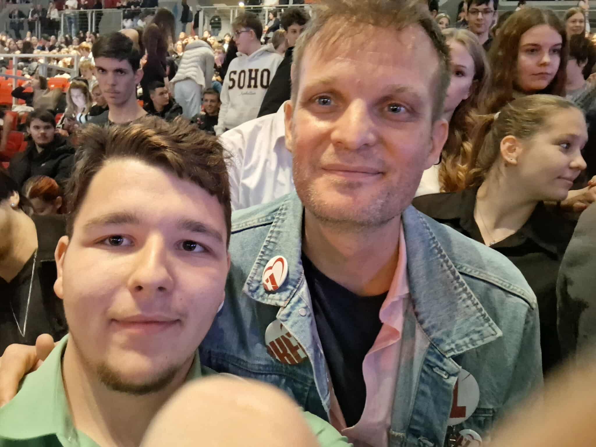 A hangulatot már az előadás előtt megalapozták: Puskás Peti és Ember Márk pörgette fel a 12 ezres diáksereget. 🎤🔥