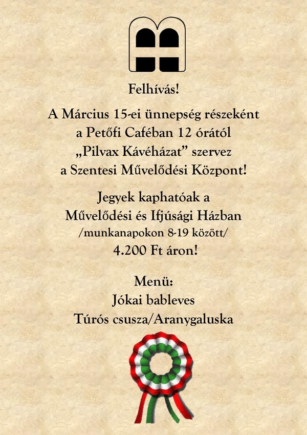 Örömmel értesítünk mindenkit, hogy a Március 15-ei ünnepség részeként a Petőfi...