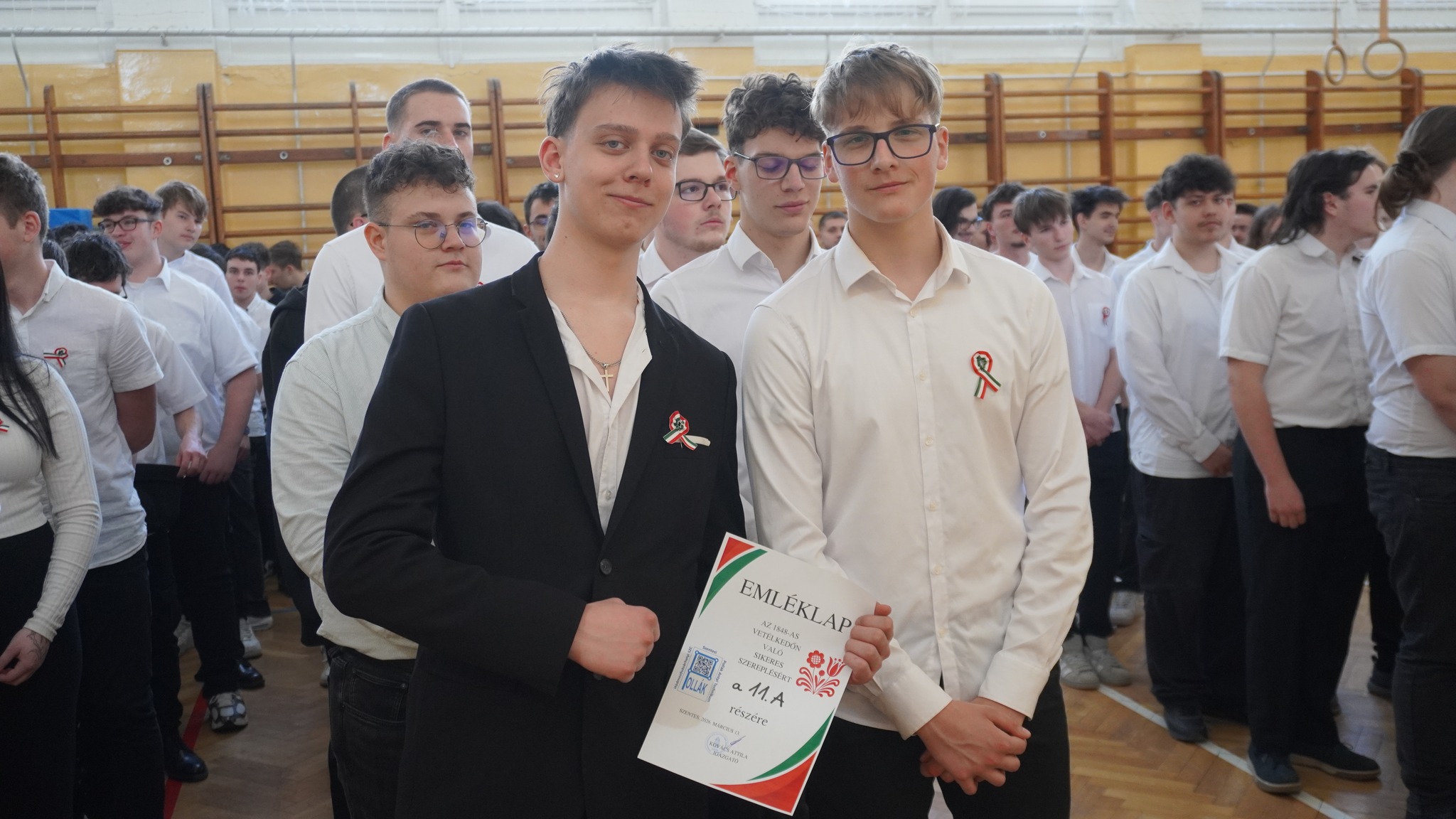 Idén egy teljes napon átívelő rendezvénnyel tisztelegtünk a forradalom hősei előtt. A flashmobot és a vetélkedőket követően ünnepi megemlékezésre gyűltünk össze a tornateremben. Kovács Attila igazgató beszédében kiemelte, hogy a jelenlévő diákok a márciusi ifjak örökösei, a 21. században is a legfontosabb alapértékek a szabadság, az egyenlőség és a testvériség. Majd lezárásként ekkor került sor a projektnap előzetes feladatát és a vetélkedők pontszámait összesítő eredményhirdetésre.