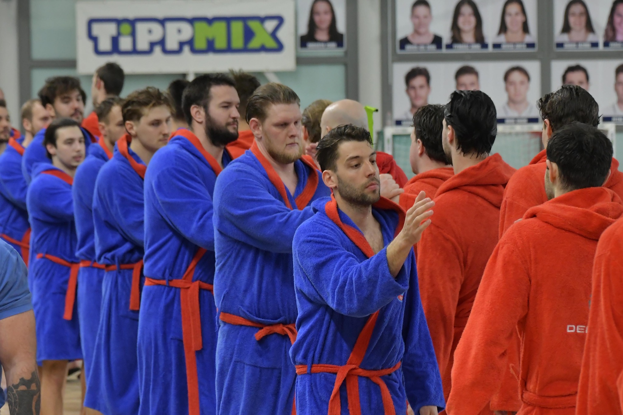 Az első negyedben kemény, küzdelmes játék folyt, a centerpozícióban sok volt a birkózás és a kontraítélet. A gólcsendet végül a debreceniek törték meg, akik emberelőnyből szerezték meg a vezetést. A második játékrészben növelték előnyüket a vendégek, de a hazaiak is felzárkóztak: Bozó Péter kétszer is eredményes volt centerből, így a szentesiek egyenlíteni tudtak. A nagyszünetre azonban ismét a hajdúságiak kerültek előnybe.