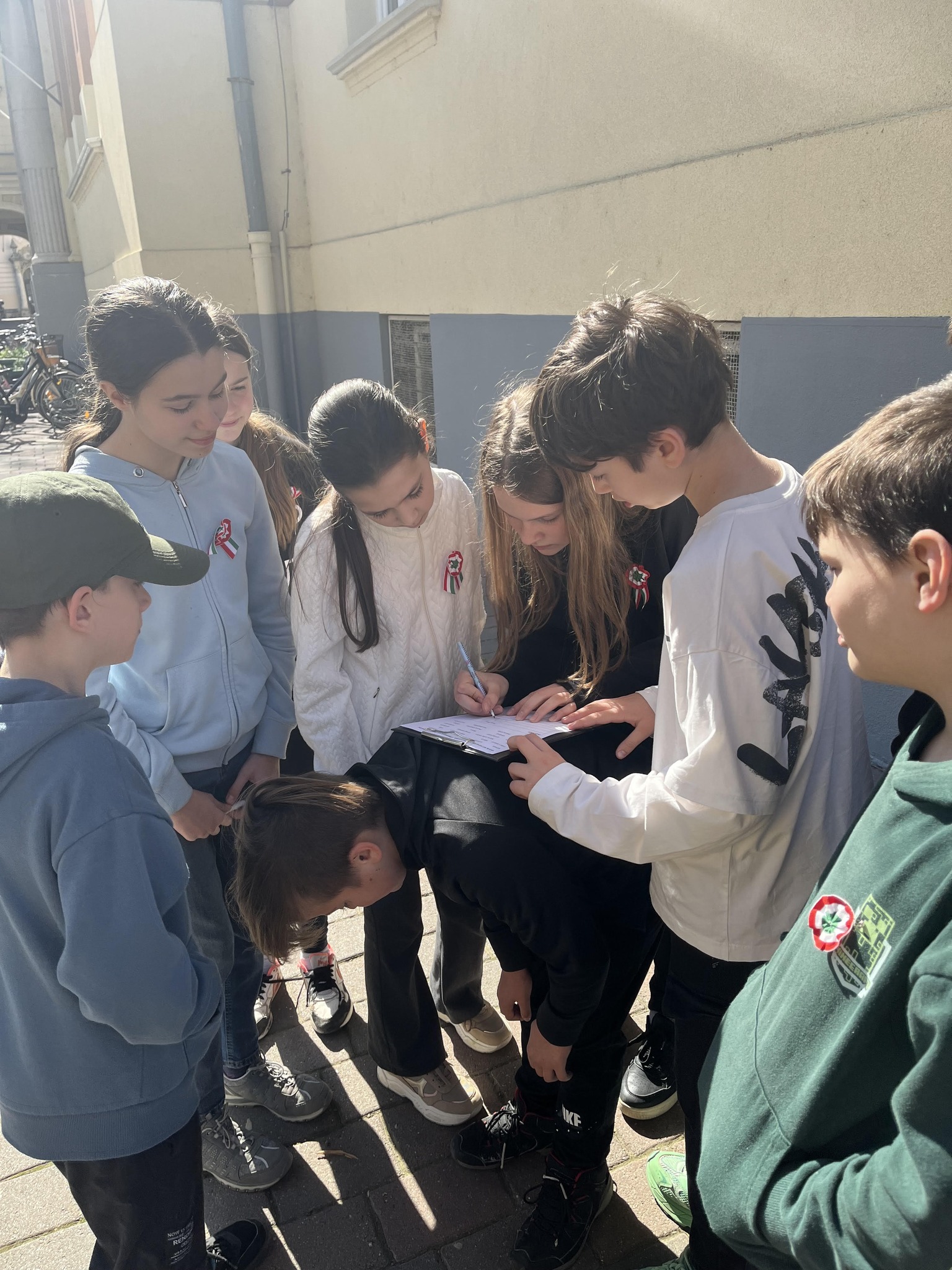 A felső tagozatban tanítók olyan rejtvényeket, kérdéseket állítottak össze, amelyek nemcsak a ’48-as eseményekhez, hanem városunkhoz is kapcsolódtak. A diákok ezeket a feladatokat oldották meg kisebb csoportokban az egyes helyszíneken. Kiszámolták például mennyi idő alatt juthatott el az üzenet Szentesről Pestre az akkori közlekedési lehetőségeket tekintve, mennyi élelmiszerre volt szükség egy ezred ellátásához, kik voltak a reformkor legfontosabb szereplői, milyen dalokkal toborozták a legényeket a hadseregbe. A Kiss Bálint-emlékévhez kapcsolódóan a református lelkész alakja is megjelent a rejtvényekben.