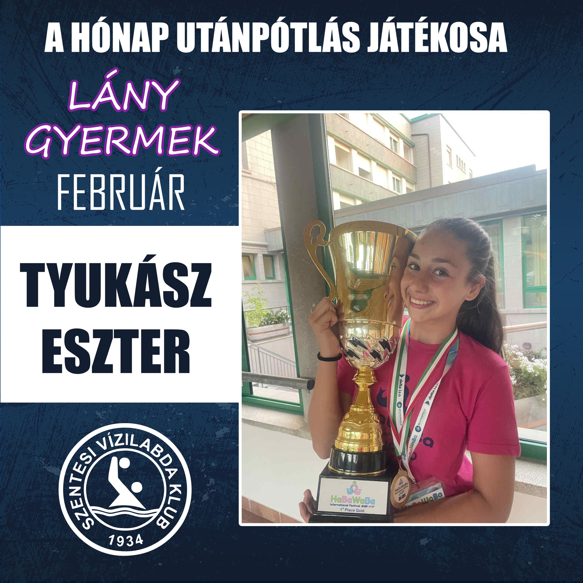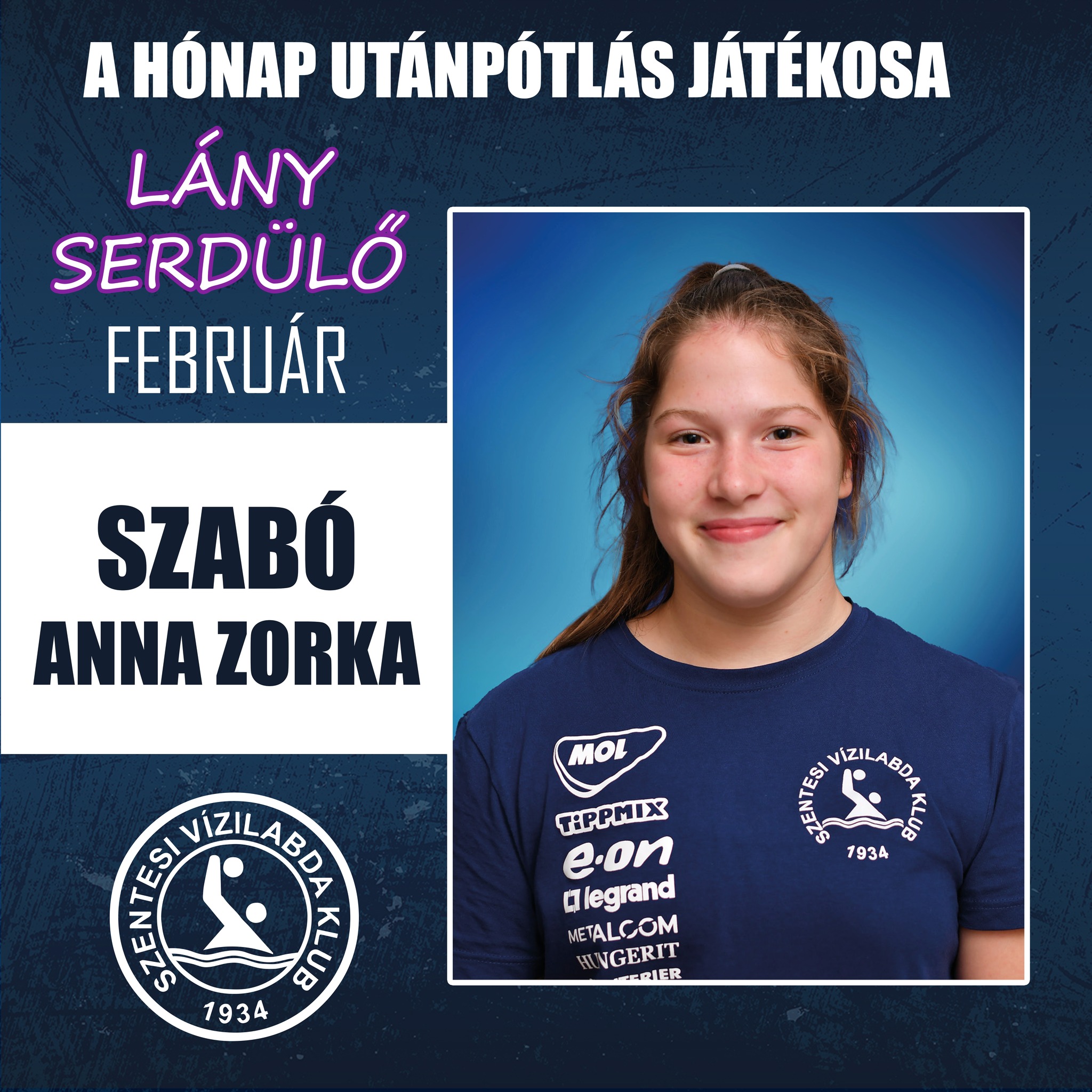Ő a csapatkapitány, mind szárazföldi és vízi edzésmunkája kiemelkedő és példaértékű. Egy komoly sérülés után tért vissza (tesi órán eltört az ujja, műteni is kellett), mind mentálisan és fizikálisan is felvette a bajnokság ritmusát elég gyorsan. Vezéregyéniség a csapatban. Megbízható játékos védekezésben és támadásban egyaránt. Többször játszott már a serdülő bajnokságban is. – Kövér-Kis Réka vezetőedző