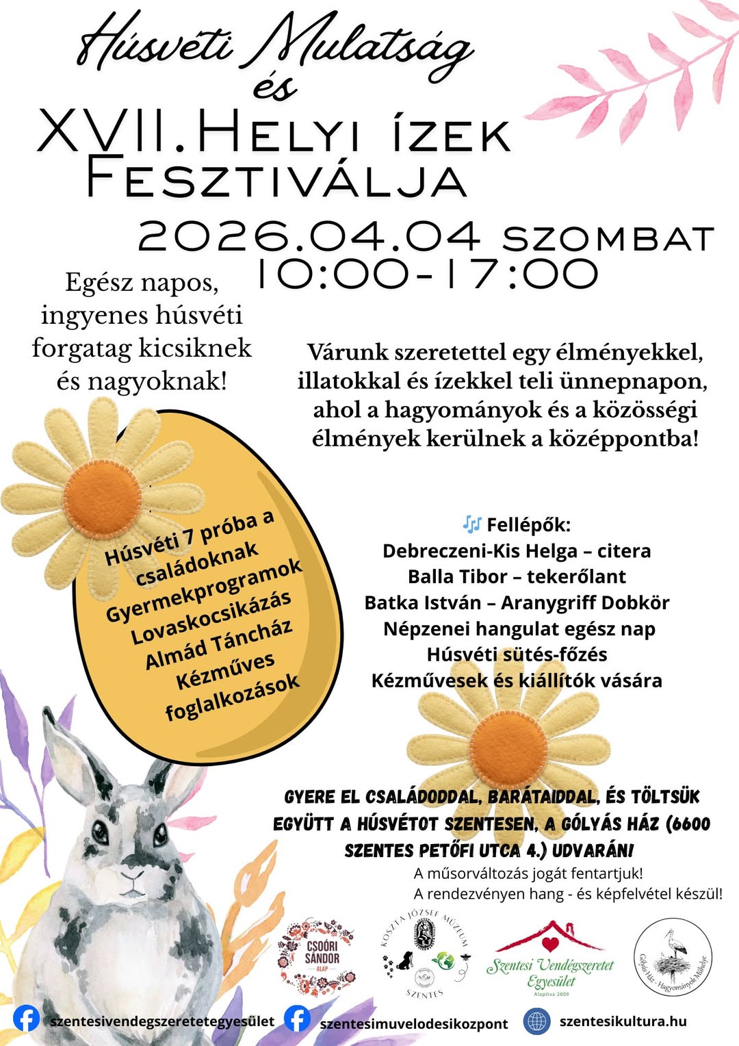 🥳🐰Mindenkit szeretettel várunk Húsvéti Mulatságra és a XVII.Helyi Ízek Fesztiváljára,ahol a hagyományok és a közösségi élmények kerülnek a középpontba! 🥳🐰