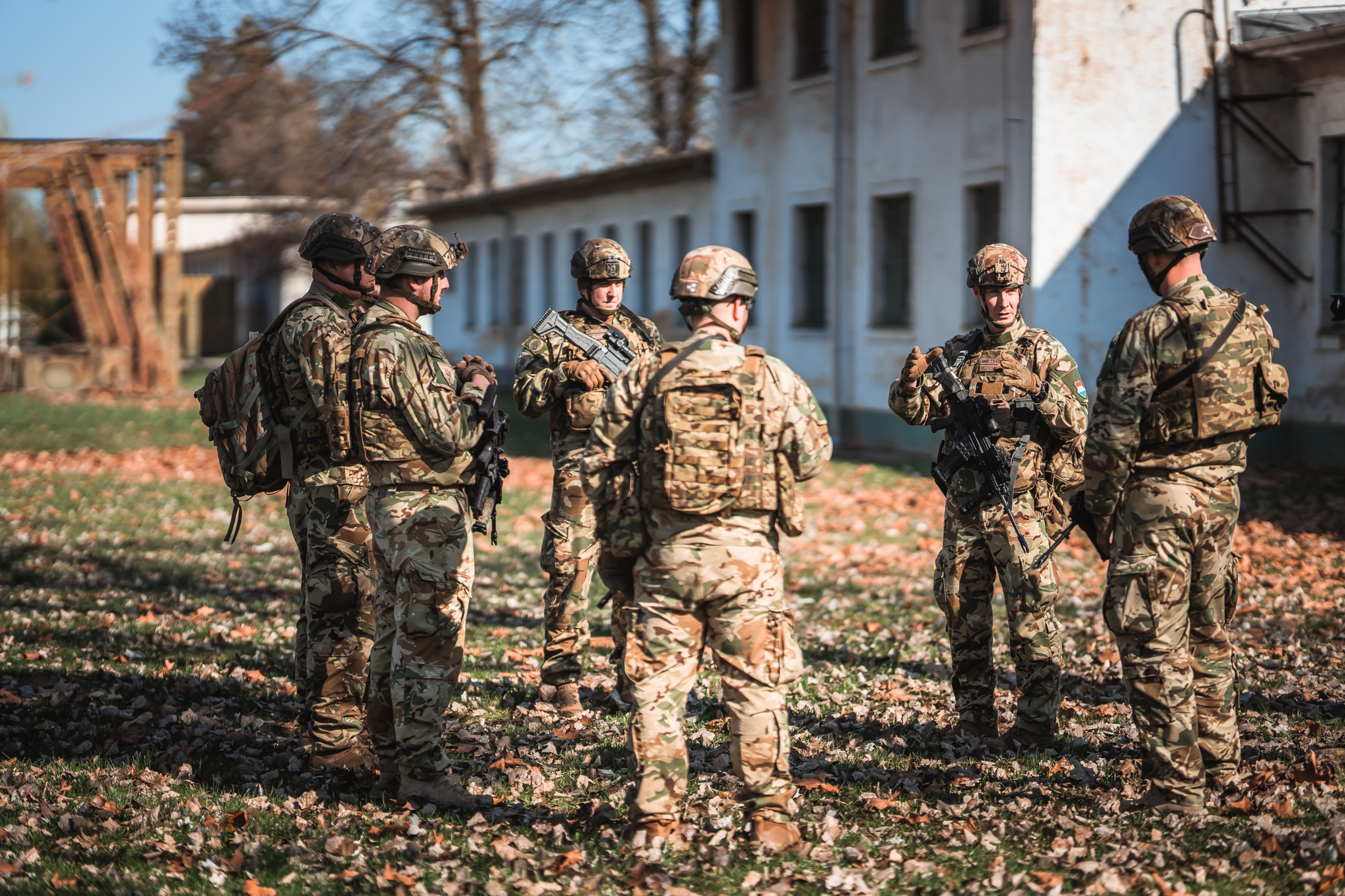 A gyakorlat során három robbanóanyag-kereső kutya segítette a tevékenységet, a katonák pedig a „military search” technikát alkalmazva biztosították az épületeket és teljesítettek távoli ajtónyitást.