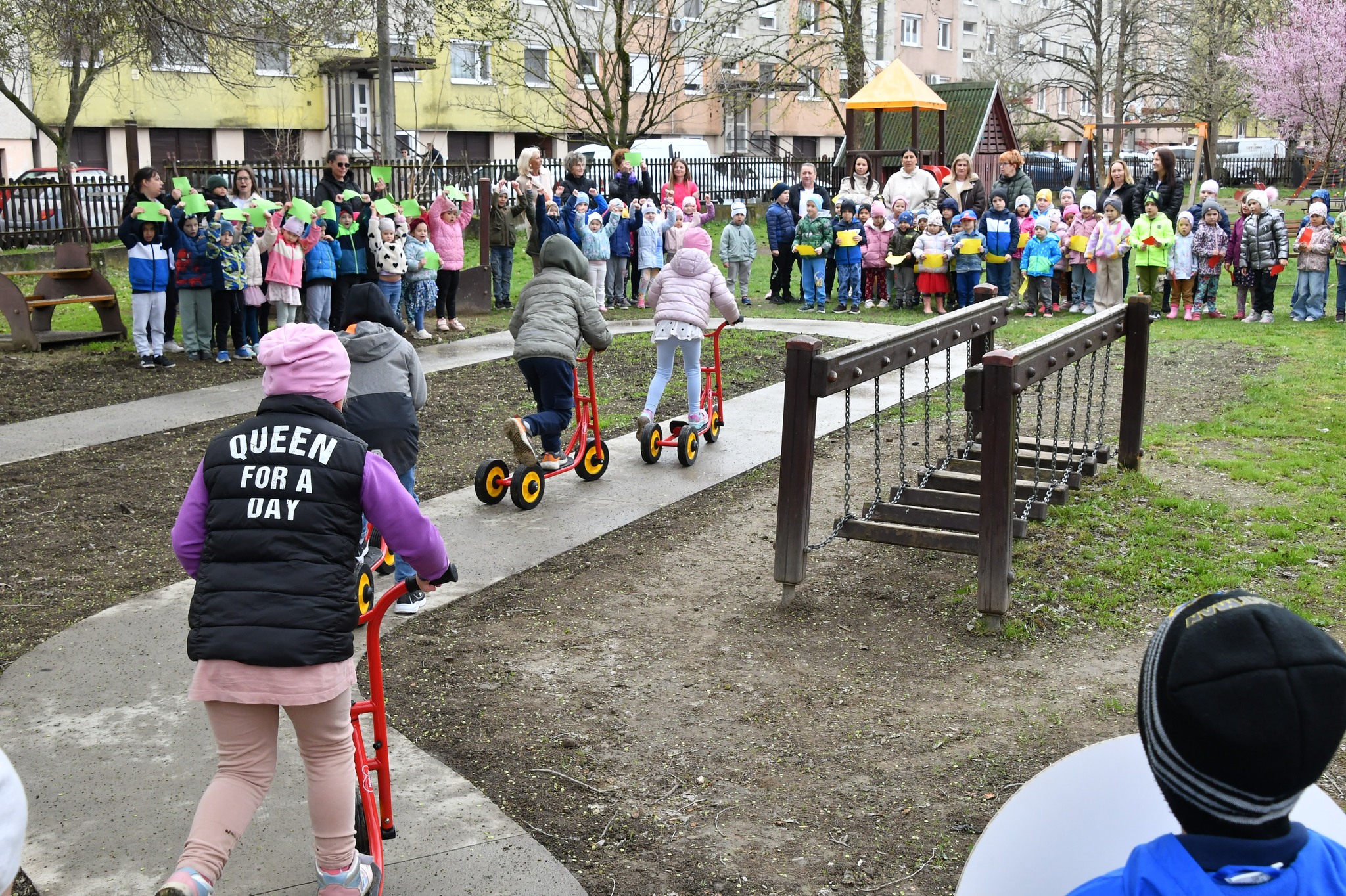 Az átadó alkalmon Szabóné Vona Krisztina, az intézmény vezetője köszöntötte a megjelenteket, köztük a kivitelezőt Orovecz István kőműves, aki nagy szakértelemmel és teljesen önzetlenül segített a pálya megvalósításában és azokat az édesapákat, akik önkéntes munkájukkal segítették a pálya megvalósítását. Az apukák munkáját emléklappal ismerték el, megköszönve a közösségért végzett áldozatos segítségüket.