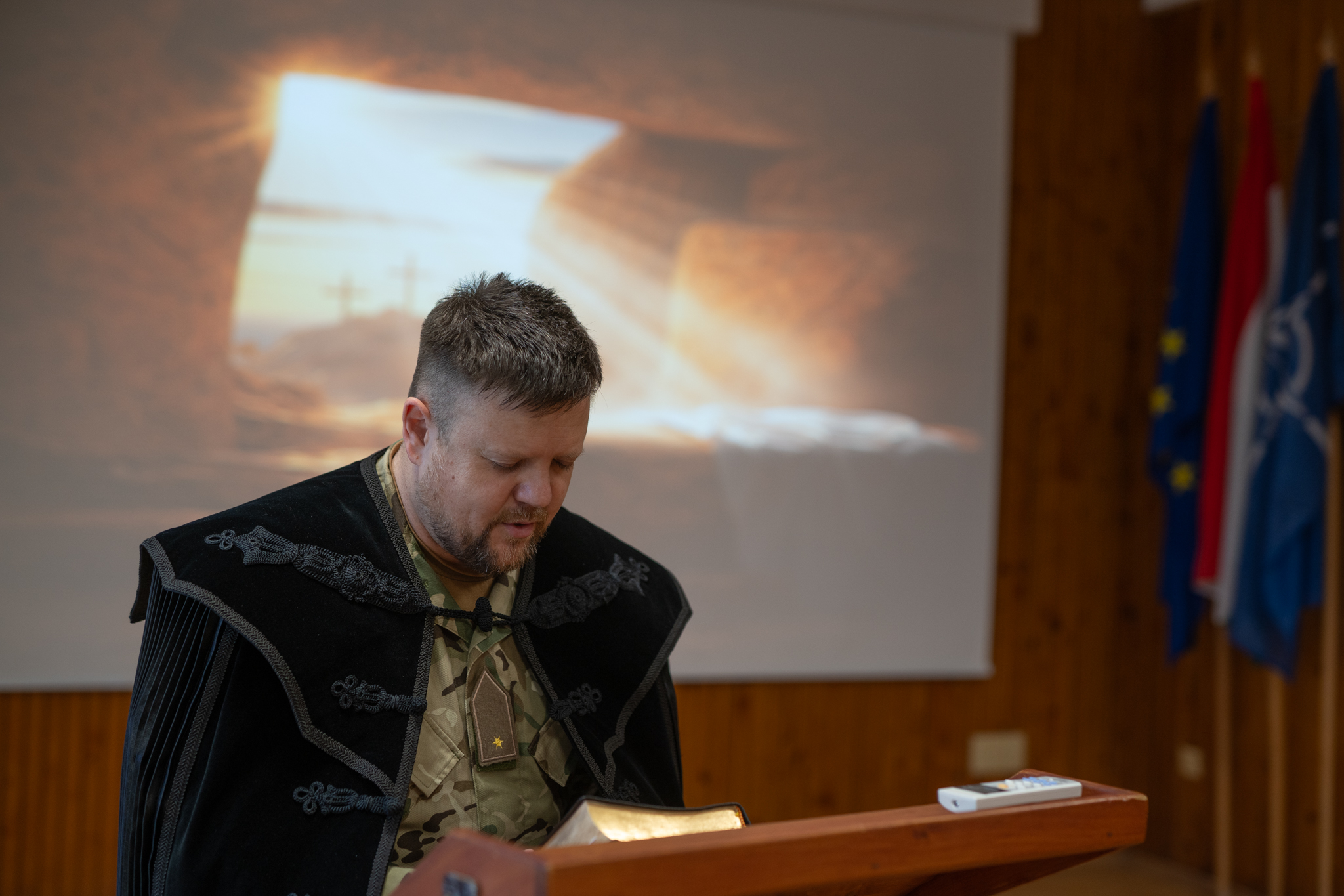 Ezredünk katonái és honvédelmi alkalmazottai ünnepélyes istentiszteleten vettek részt, amelyet Bogáti Attila hadnagy, református tábori lelkész tartott.