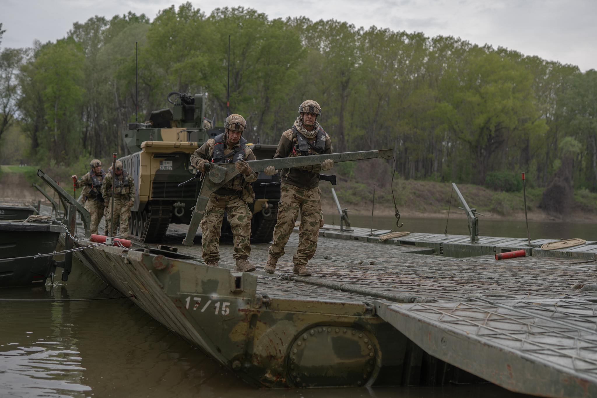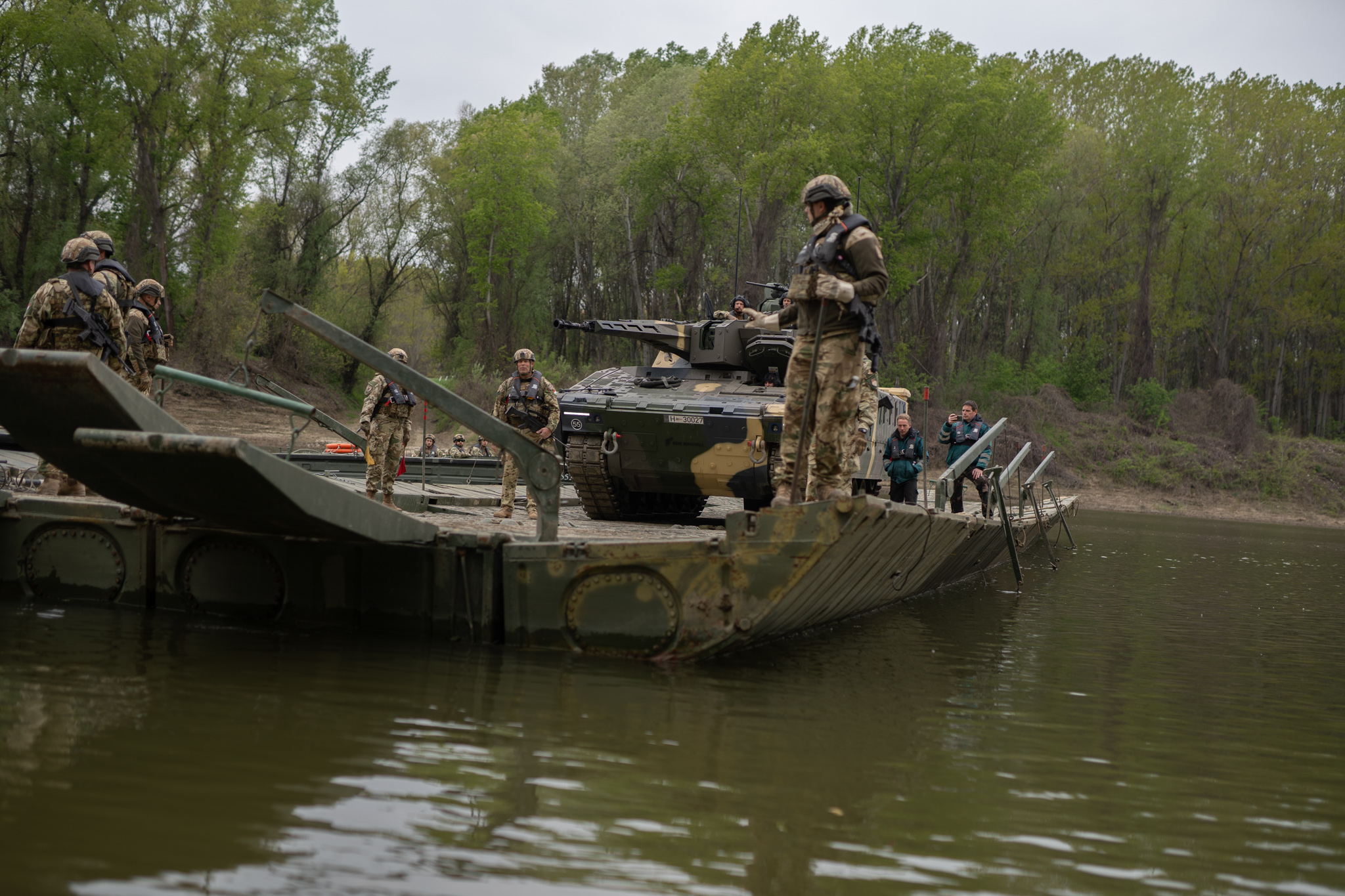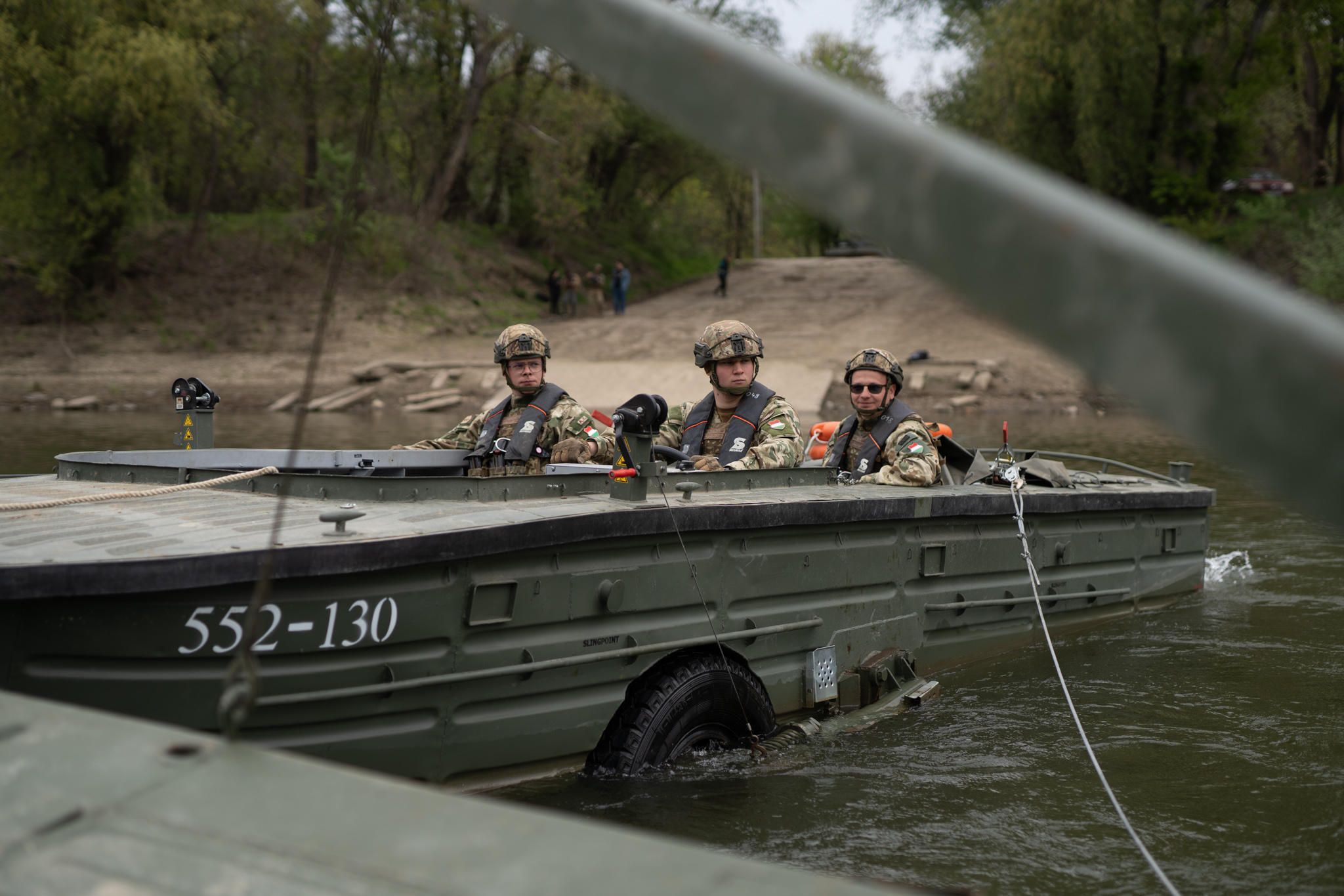 🌊A Tiszán végrehajtott átkelés során a Lynx harcjárművek biztonságos mozgatását a műszaki katonák tették lehetővé. Alakulatunk katonái nemcsak a komp működtetését biztosították, hanem a járművek összehangolt mozgatását is.