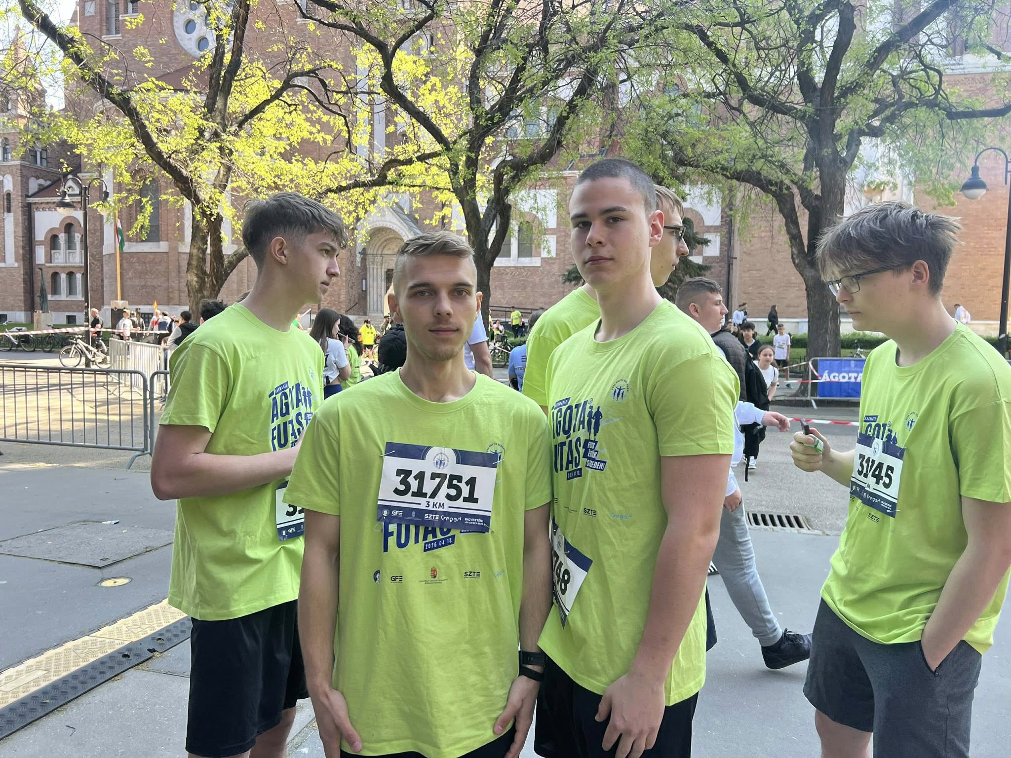 2026. április 18-án rendezték meg Szegeden a III. ÁGOTA-futást. A nevezésekből befolyt összeg az állami gondoskodásban nevelkedő gyermekek megsegítéséért tevékenykedő alapítványhoz került. Iskolánk tíz diákja – Képes Zsombor, Bencsik Marcell, Szabó Kevin, Sinka Balázs, Szabó Milán, Szécsényi Ádám, Vass Sándor, Miskolczi Titusz, Rácz Bendegúz, Ország László -, valamint egy oktatója, Gáspár Marcell vett részt a versenyen, 3 és 6 km-es távokon. Büszkék vagyunk teljesítményükre és segítőkészségükre! 👏🏻 Köszönjük a Hódmezővásárhelyi Szakképzési Centrumnak, hogy finanszírozta a nevezési díjakat!