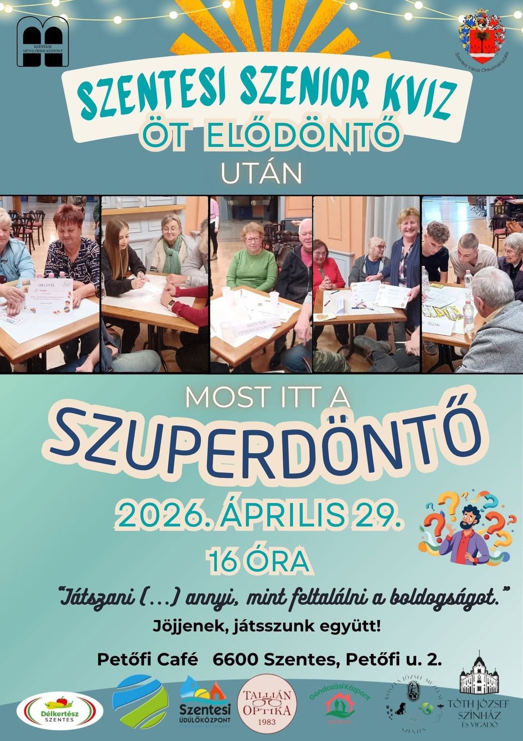 Kezdőlap Szentesi Élet Egy sorozat fináléja. Április 29-én Szenior Kvíz Szuperdöntő!…