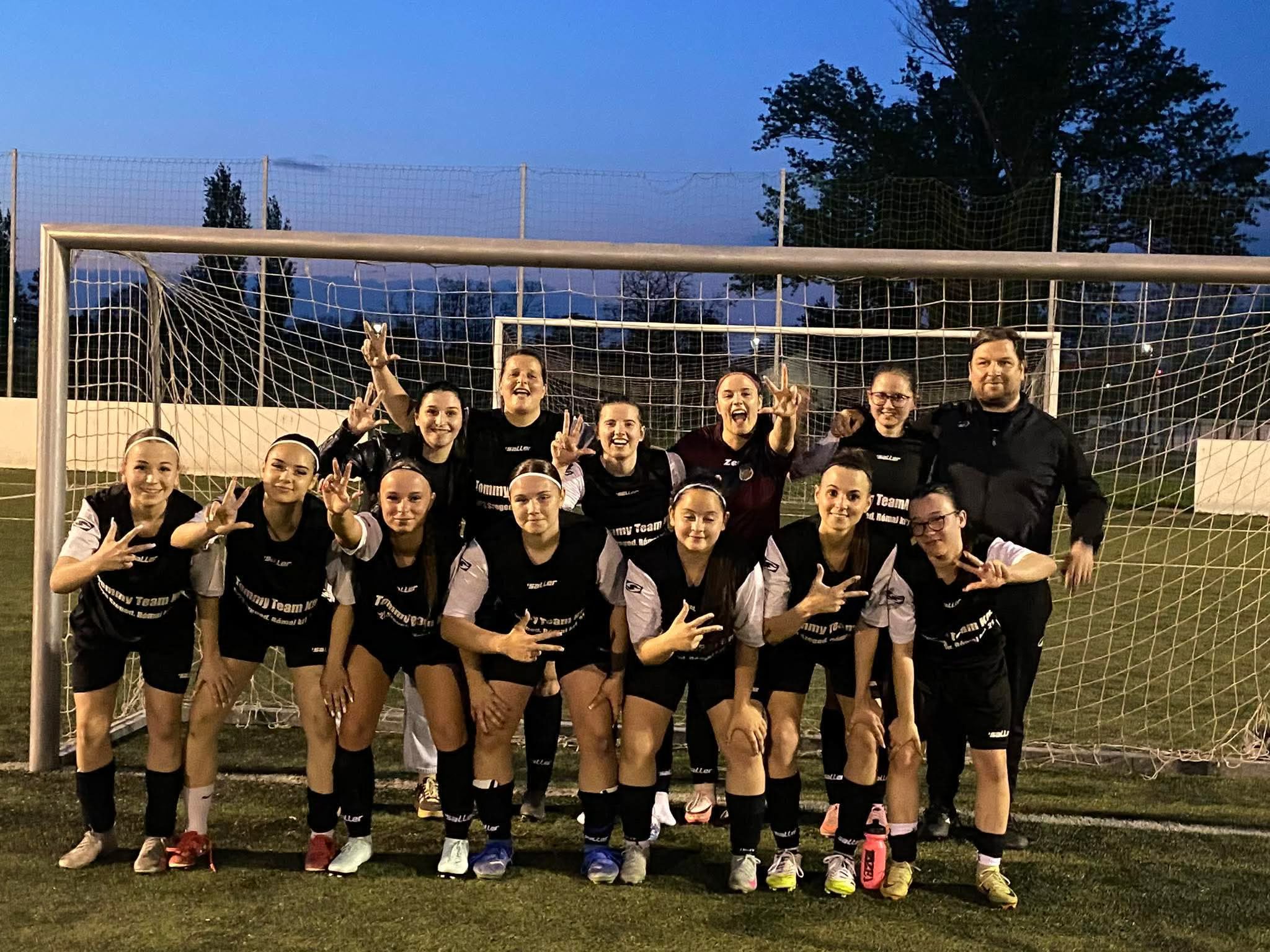 Szokatlan időpontban, pénteken este hatkor került sor soron következő bajnokinkra, hazai pályán. Fegyelmezetten és a megbeszélteket igyekeztek betartva kezdeni a lányok. Egy szerencsés góllal sikerült megszerezni a vezetést, de sajnos a szünet előtt sikerült egyenlítenie a vendég csapatnak. A második félidőre is úgy mentek ki a hölgyek hogy meg akarják nyerni a mérkőzést. Egy szép támadás végén sikerült is újra megszerezni a vezetést. Ezután a vendég csapat mozgósította tartalékait és egyre többször kerültek helyzetbe, de hol a kapufa hol pedig a Kapuban kamilla segítette ki egy bravúrral a csapatot. Igazi ki-ki meccs alakult ki a második játékrészre. A végén egy szép szabadrúgásból Adél megszerezte maga és a csapat harmadik gólját, ezzel kialakítva a végeredményt. Gratulálok a csapatnak mert ez igazi nagybetűs CSAPATMUNKA volt, amiből mindenki kivette a részét!