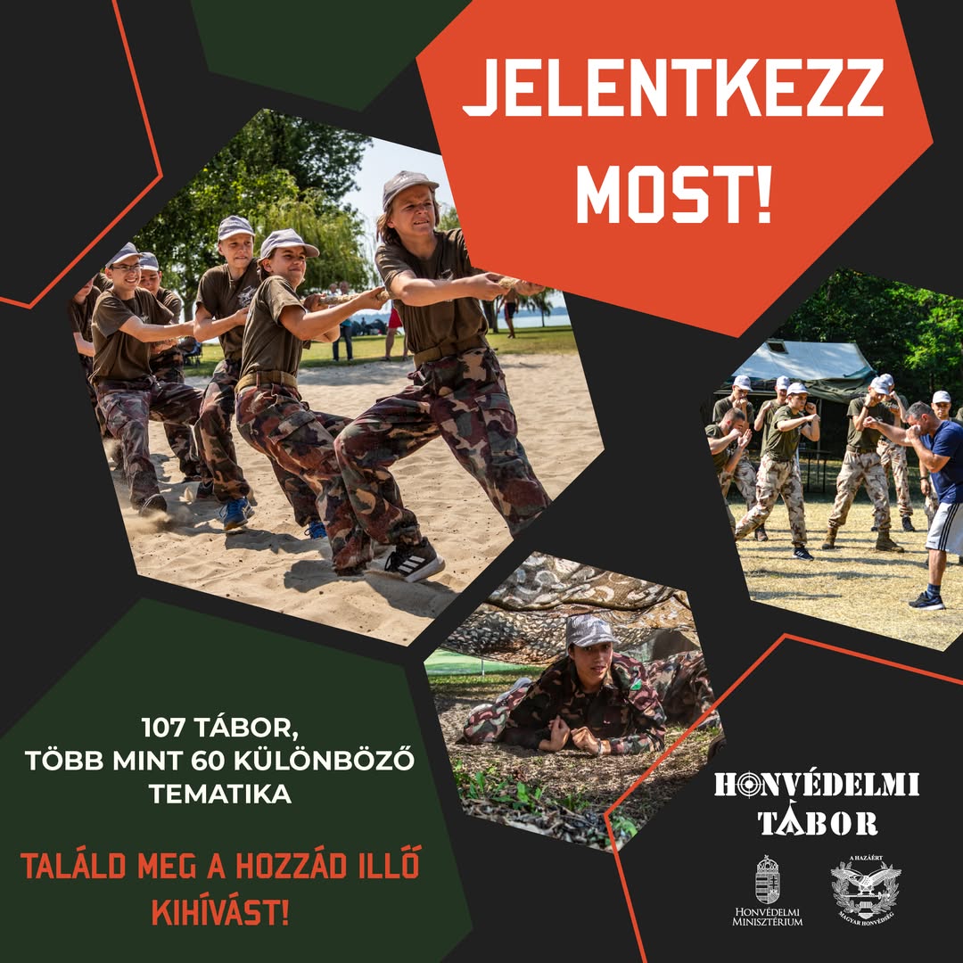 A Magyar Honvédség nyári táboraiban a 12-25 év közötti fiatalok élményeken keresztül ismerkedhetnek meg a katonai élet izgalmas oldalával: a csapatmunka, a fegyelem, és a kihívások itt valódi kalanddá válnak.
