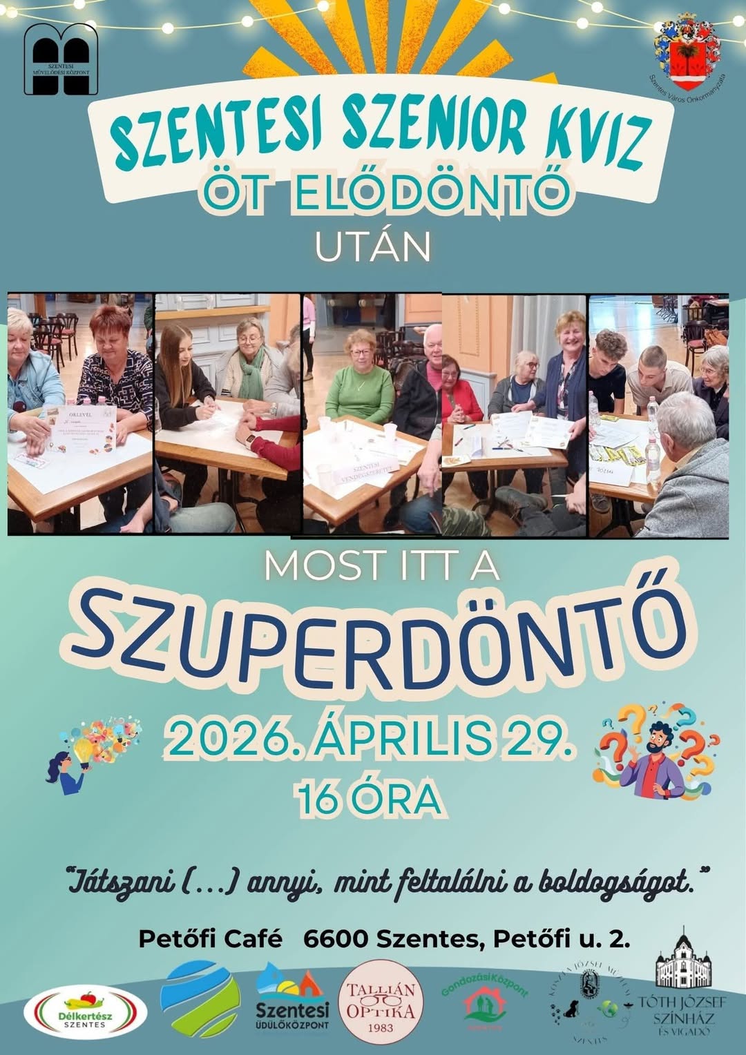 Jöjjenek, szurkoljanak és nézzék meg, ki lesz 2026-ban a legjobb csapat a Szentesi Szenior Kvízben!🥳🗣️❓