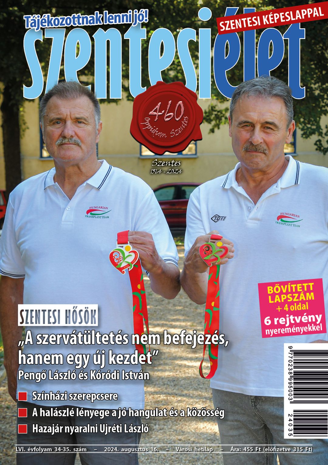 Az e heti Szentesi Élet címlapján Pengő László és Kóródi István látható, akik polgármesteri elismerést vehettek át, miután a Szervátültetettek és Művesekezeltek Európa-bajnokságán fantasztikus eredményeket értek el Lisszabonban. Sportteljesítményükkel, kitartásukkal, emberi nagyságukkal hozzájárultak Szentes jó hírének öregbítéséhez.